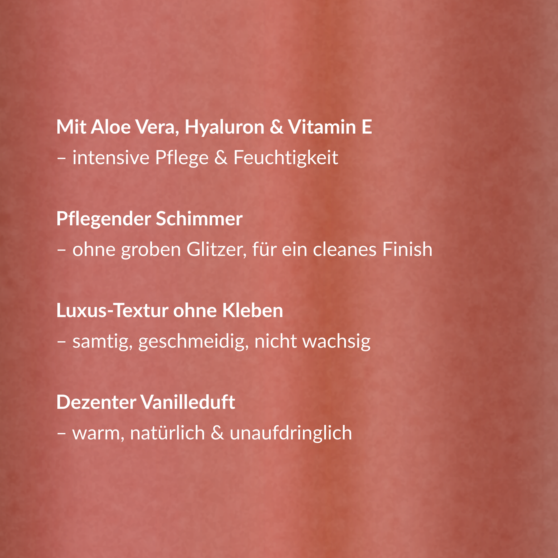 Silky, shiny, and nourishing—our lip glosses combine a trendy look with high-quality, vegan ingredients. For lips that shine and feel pampered at the same time.